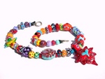2009Rond het sprekende hart zijn verschillende hangemaakte glaskralen aangeregen tot deze ketting.