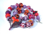 2009Deze ketting bestaat uit allerlei verschillende handgevormde kralen glazen kralen, maar vindt zijn samenhang en harmonie in het kleurgebruik, paars, rood en oranje.
